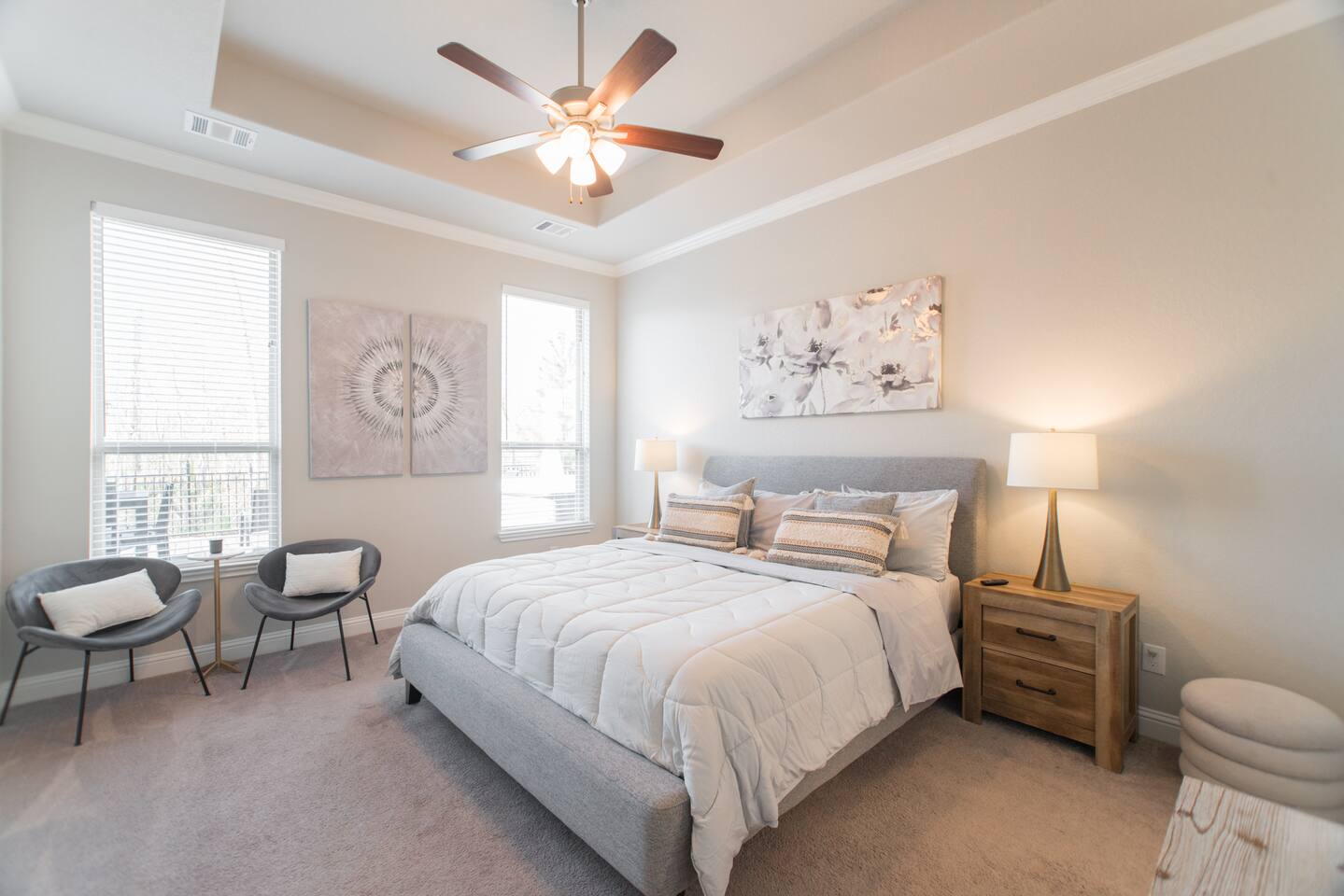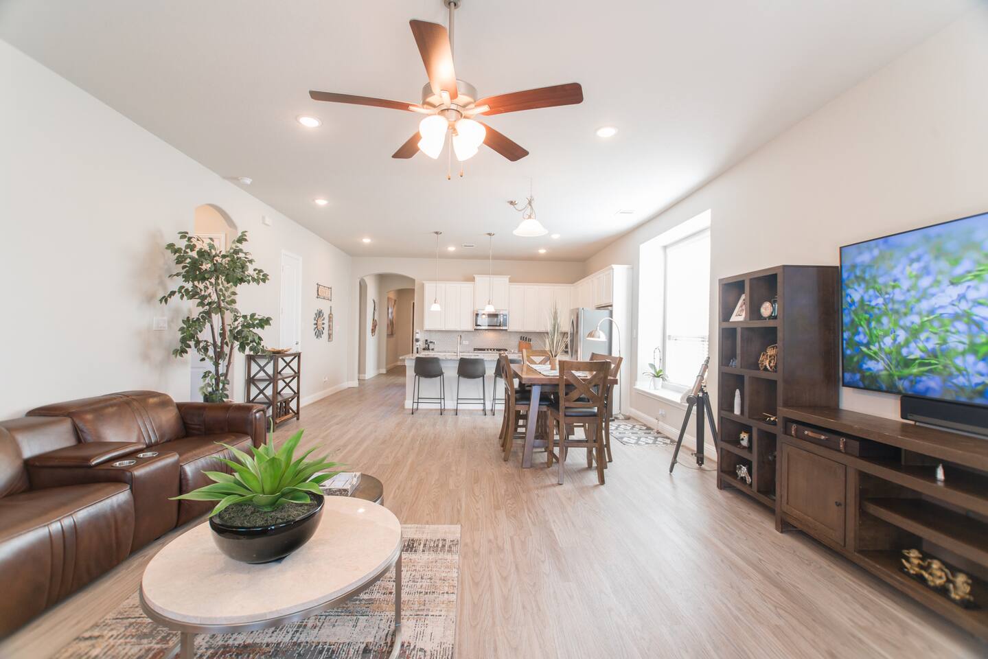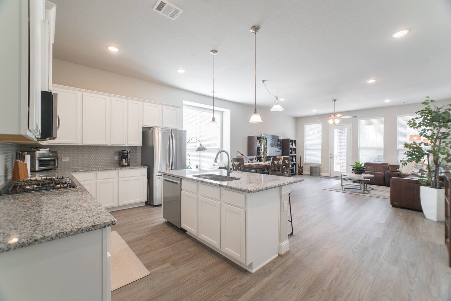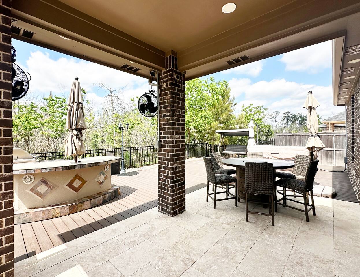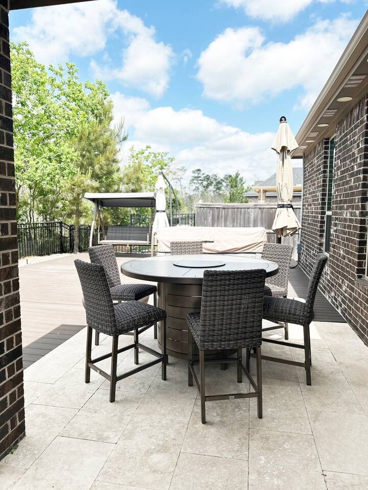Indulge in luxury at our fully furnished single-story haven in Harper's Preserve, near The Woodlands, TX. With contemporary flair and family-friendly charm, including a serene terrace overlooking the forest with a beautiful summer kitchen, it's the perfect retreat to create unforgettable memories. This 1-story gem boasts modern furniture and decor, kid-friendly amenities, and ample spaces for a comfy stay in our nice, private, and quiet neighborhood. Stay active with our indoor gym equipment. With 4 bedrooms accommodating up to 8 guests, it's ideal for 1-2 families. Quick access to Interstate 45 and an array of nearby amenities ensure convenience, while North Houston & The Woodlands beckon with their vibrant offerings of fine dining, shopping and medical services. Experience a hassle-free stay with a top-rated Super Host, just look at our reviews!