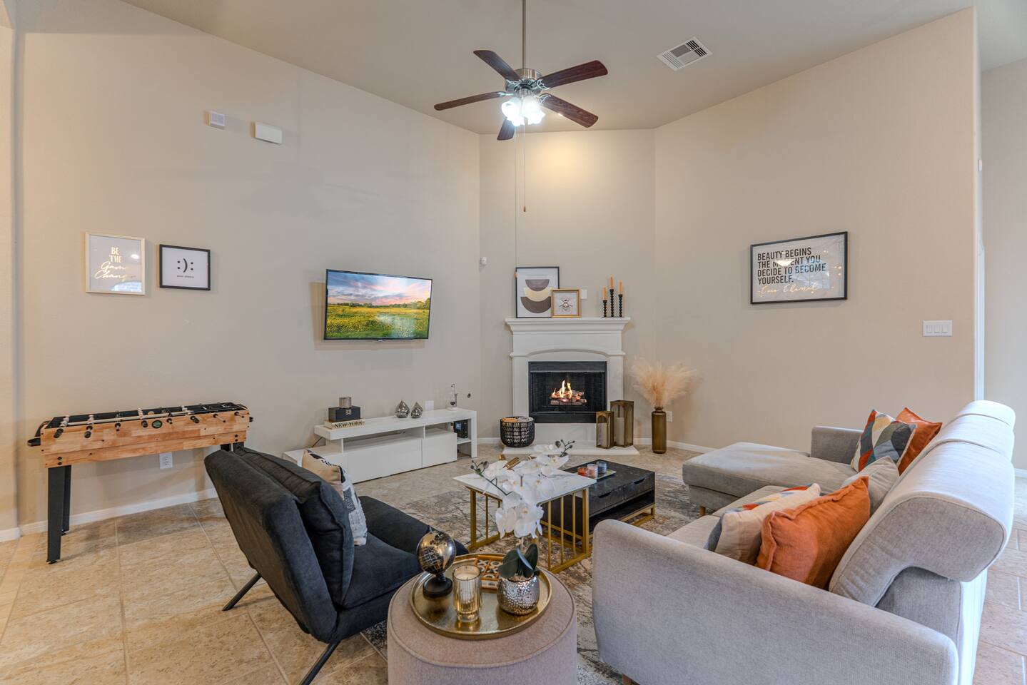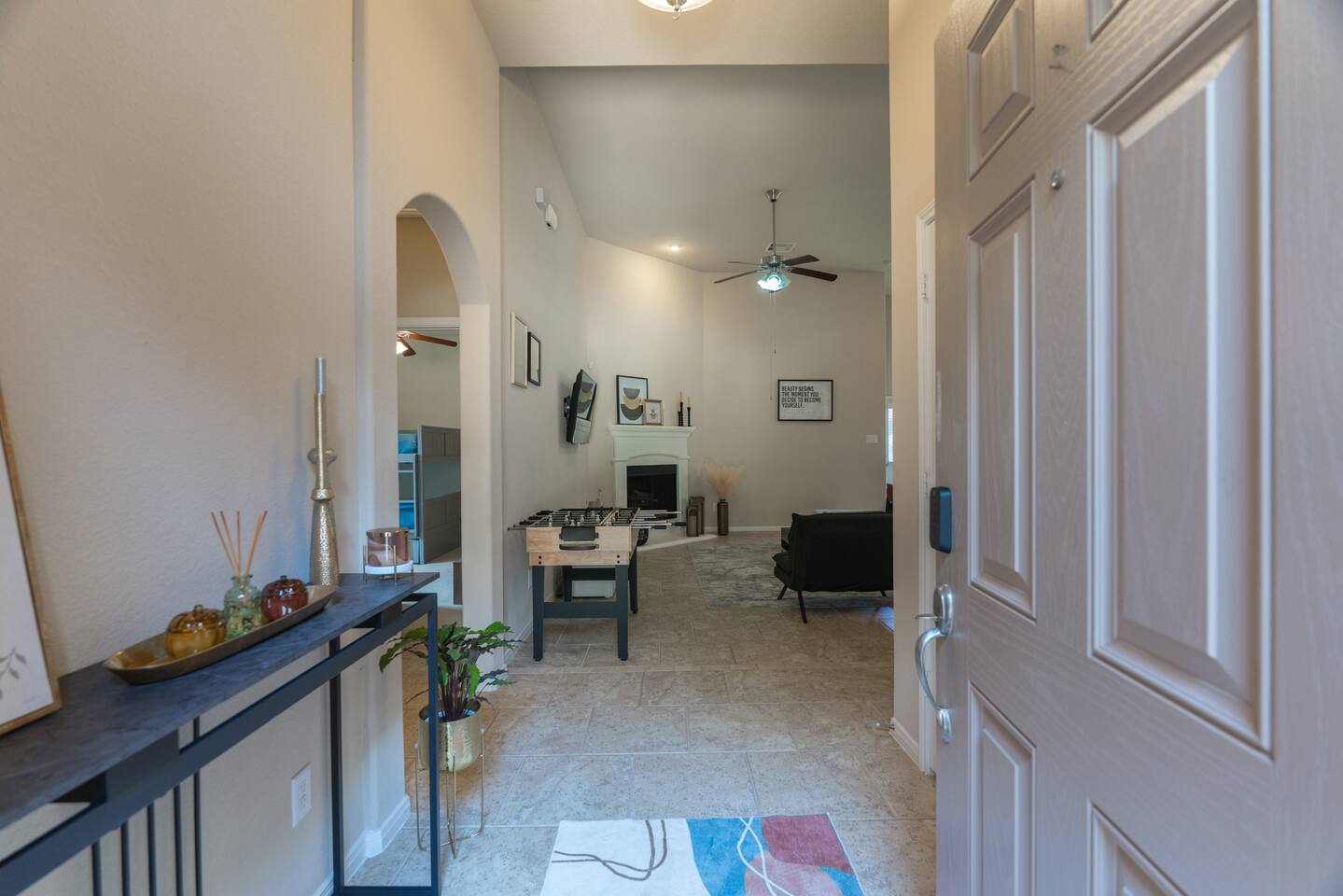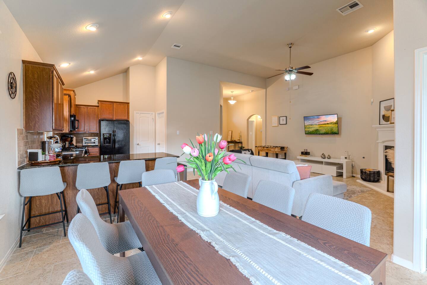 Cozy Retreat – Perfect for Families & Groups Welcome to your home away from home! This 3-bedroom, 2-bath home offers modern comfort, thoughtful design, and plenty of space for up to 9 guests. Ideal for families or groups, you'll enjoy: 🛏️ 3 Bedrooms: All in Ground floor: • Bedroom 1 – One King bed • Bedroom 2 – One King bed • Bedroom 3 – Two Full bed bunk beds with One Single (trundle) bed underneath 🛁 2 Full Bathrooms – both on ground floor. Clean, stylish, and stocked with essentials 🍽️ Fully Equipped Kitchen – New appliances & fully stocked for cooking 🌐 Fast WiFi – Stay connected and stream with ease 🎮 Games for all - Foosball table that also turns into a Pool table! 🌳Cozy Backyard – Fenced backyard with a small sitting area to enjoy nature and lounge chairs with umbrella 🧼 Fresh, Modern Decor – Clean finishes and brand-new furnishings throughout Whether you're relaxing on the terrace, cooking a family meal, or letting the kids play in the yard, this home has everything you need for a memorable and comfortable stay.