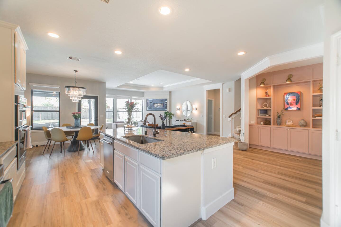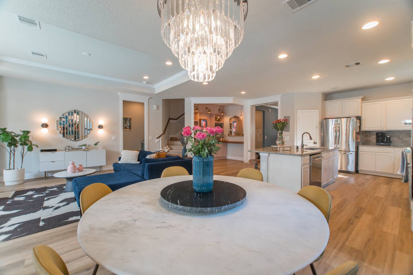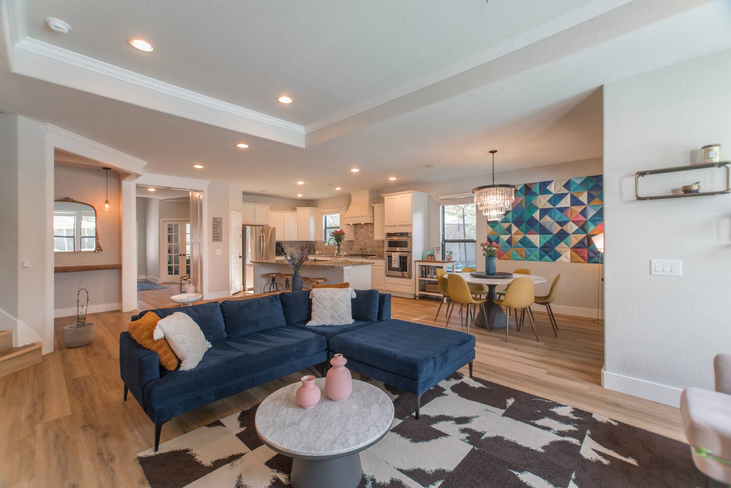 🎨 Modern eclectic design with a cozy, homey vibe – perfect for family gatherings 🏡 Unique blend of styles creates a warm, inviting space for connection and relaxation BEDROOMS: 🛏️ Master bedroom (King bed) on the ground floor 🛌 Upstairs bedrooms: • Bedroom 1 – King bed • Bedroom 2 – Full bed • Bedroom 3 – Full bed + trundle 🎮 Game room with full-size sofa sleeper 🚿 2 full bathrooms upstairs for added convenience 🏊♂️ Brand new pool & spa – truly breathtaking! 🔥 One-of-a-kind sunken fire pit for evening vibes 🍔 Outdoor kitchen – perfect for grilling and entertaining 🛒 Close to parks, restaurants & shops for ultimate fun and comfort