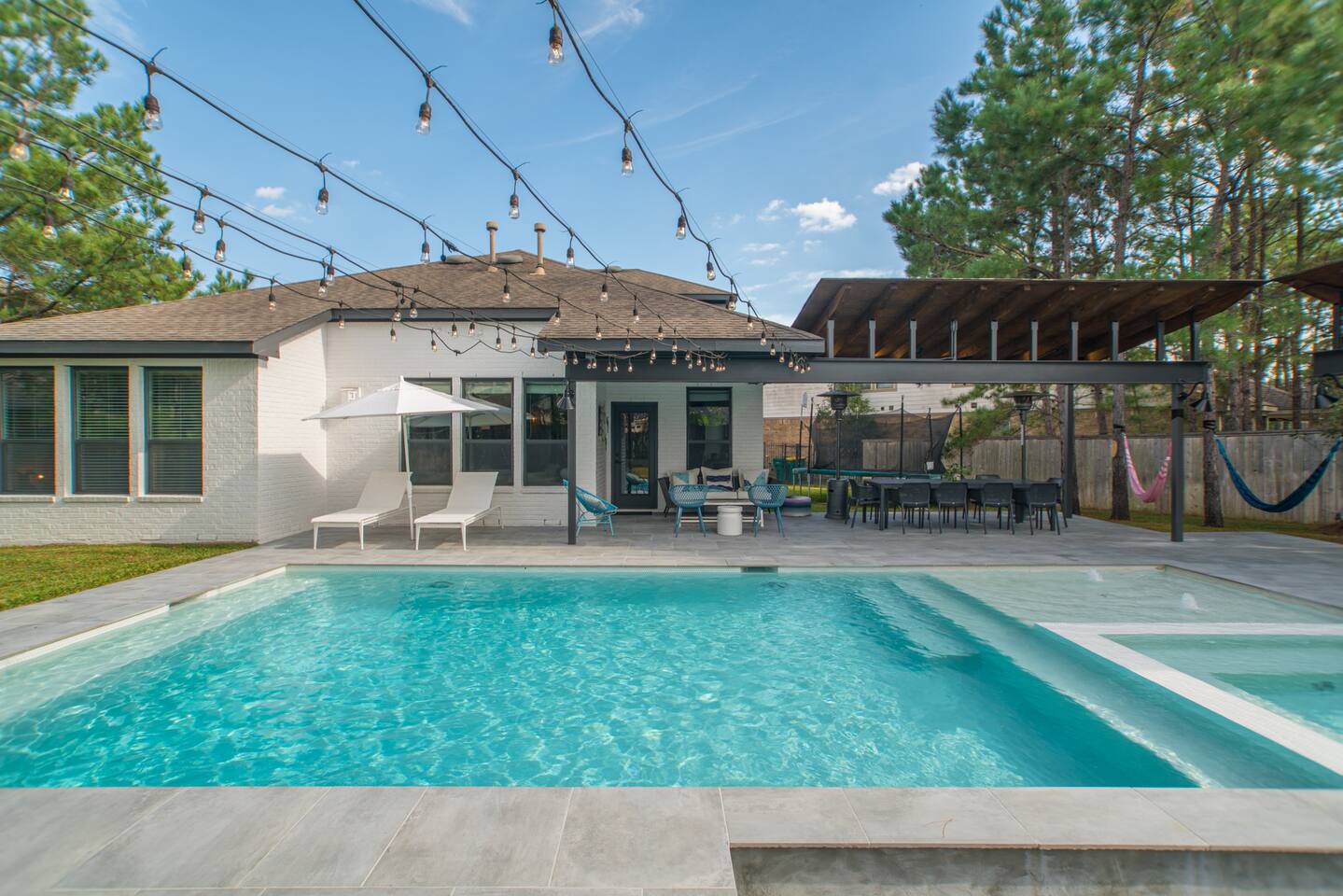 Located in the exclusive and sought-after community of The Woodlands, this home sits on a quiet cul-de-sac surrounded by trees and forest. 🌿 A Master-Planned, Lush Environment — Nestled in one of the nation’s premier master-planned communities, The Woodlands offers abundant nature with tree-lined streets, 151 parks, and over 220 miles of trails for walking, biking, and exploring. 🎸 Vibrant Arts & Live Music Scene — Just minutes away, guests can enjoy concerts and cultural events at the renowned Cynthia Woods Mitchell Pavilion and stroll along the Waterway with art festivals, live performances, and a charming nightlife. 🏬 Top-Tier Shopping & Dining — Close to Market Street and The Woodlands Mall, this area offers over 160 shops, restaurants, a movie theater, and the newly opened Paris Baguette café—perfect for a leisurely day out. 🏌️ Prime Golf & Country Club Access — Ideal for golf enthusiasts, the prestigious Woodlands Country Club—with multiple championship courses—is within easy reach. Family‑Focused Lifestyle — With award-winning schools, playgrounds, splash pads and a strong sense of community, it’s a wonderfully kid-friendly place—plus a supportive small-business ecosystem adds local charm.