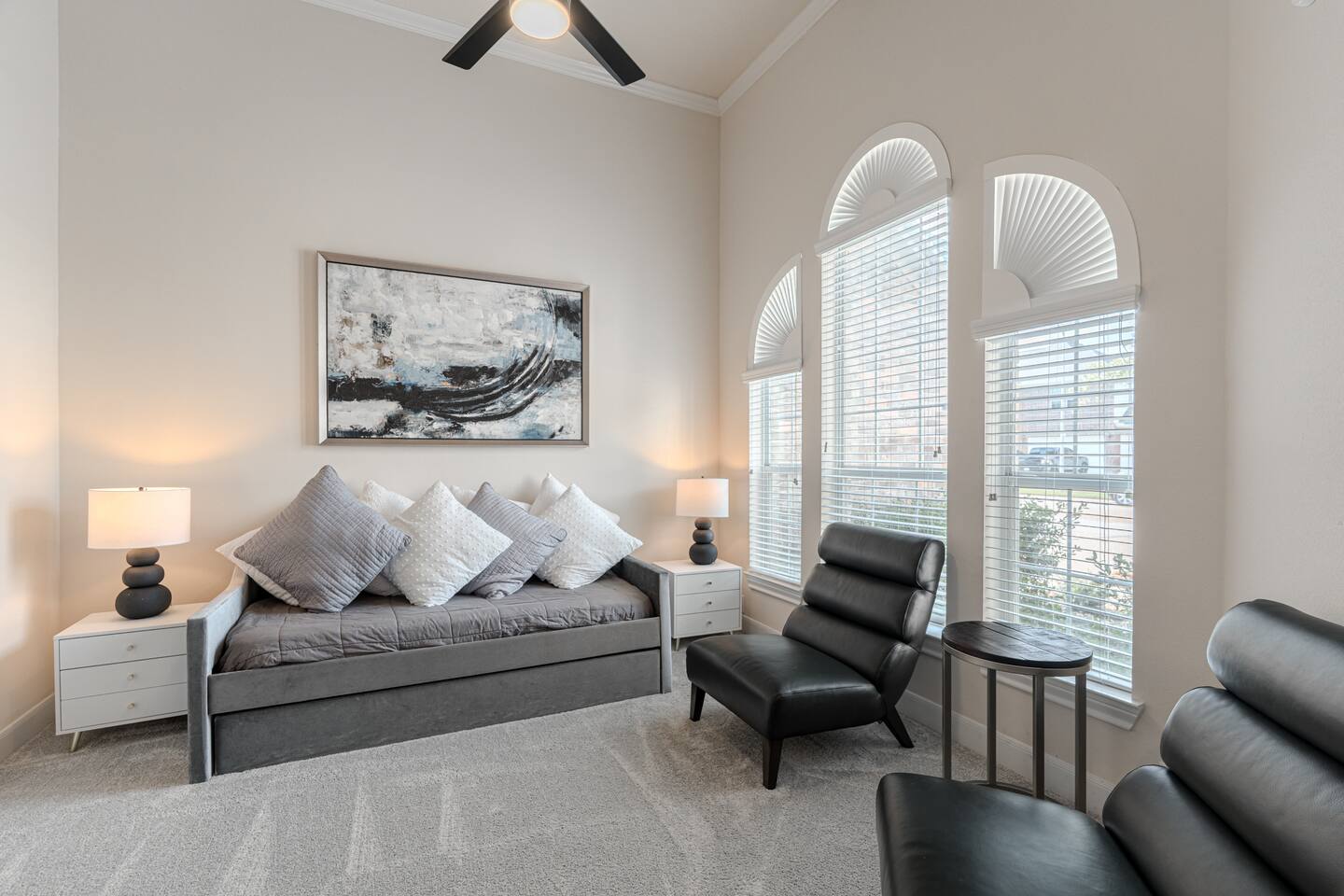For reservations of 14 days or more, a mid-stay cleaning is required at the same rate as the original booking price. 🎉 NEARBY ATTRACTIONS • The Woodlands Waterway: 15–20 mins Scenic path with restaurants, shops, & beautiful waterfront views. • Market Street: 15–20 mins Upscale outdoor shopping, dining, & entertainment district. • The Woodlands Mall: 15–20 mins Large shopping center with major retailers, dining, & entertainment. • Cynthia Woods Mitchell Pavilion: 15–20 mins Top-rated outdoor concert venue hosting major performances & events. • Lake Woodlands: 10–15 mins Great for kayaking, paddleboarding, & enjoying waterfront views. • George Mitchell Nature Preserve: 5–10 mins Explore 1,700+ acres of forest with scenic hiking & biking trails. • Lake Conroe: 35–40 mins (30–35 miles) Popular spot for boating, fishing, lakeside dining, & water activities. • George Bush Intercontinental Airport (IAH): 40–45 mins (28–30 miles) Major airport with domestic & international flights. • Downtown Houston: 45–55 mins (35–37 miles) Access museums, dining, nightlife, sports venues, & more.