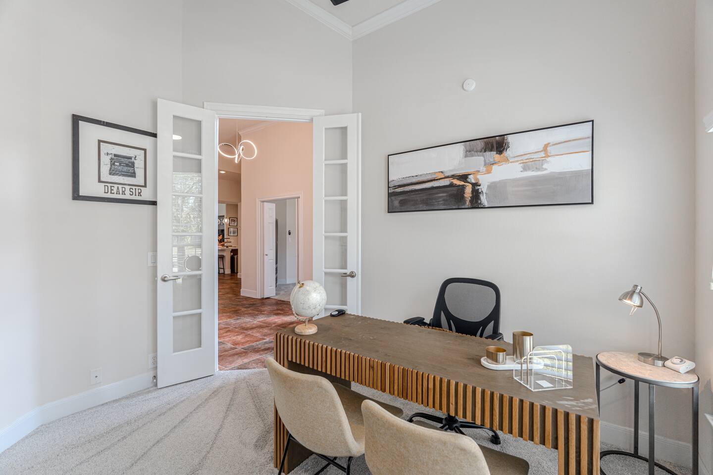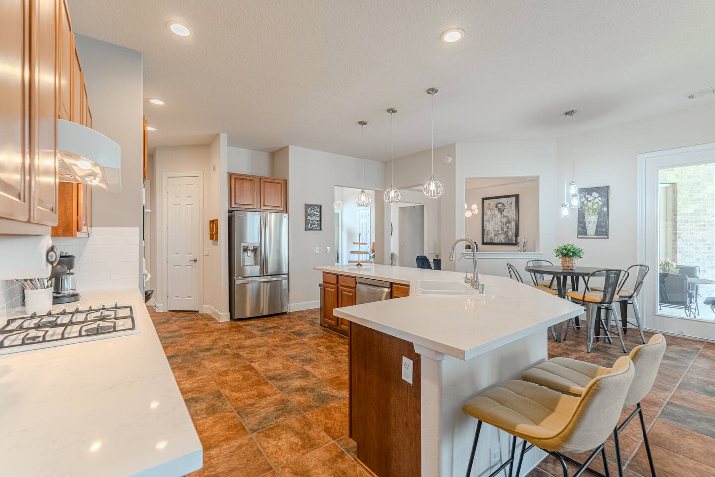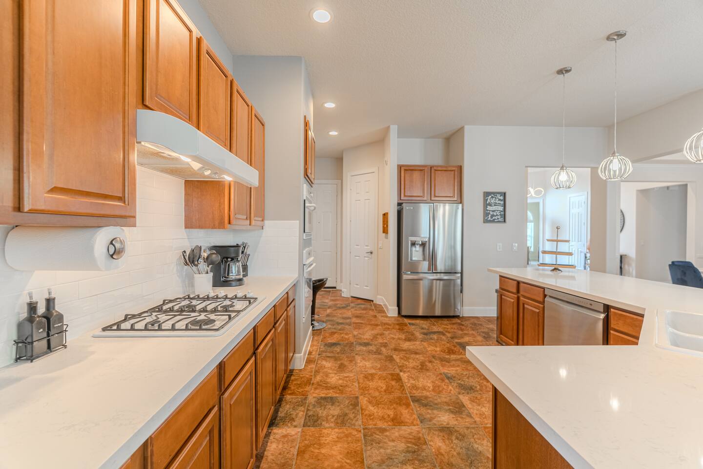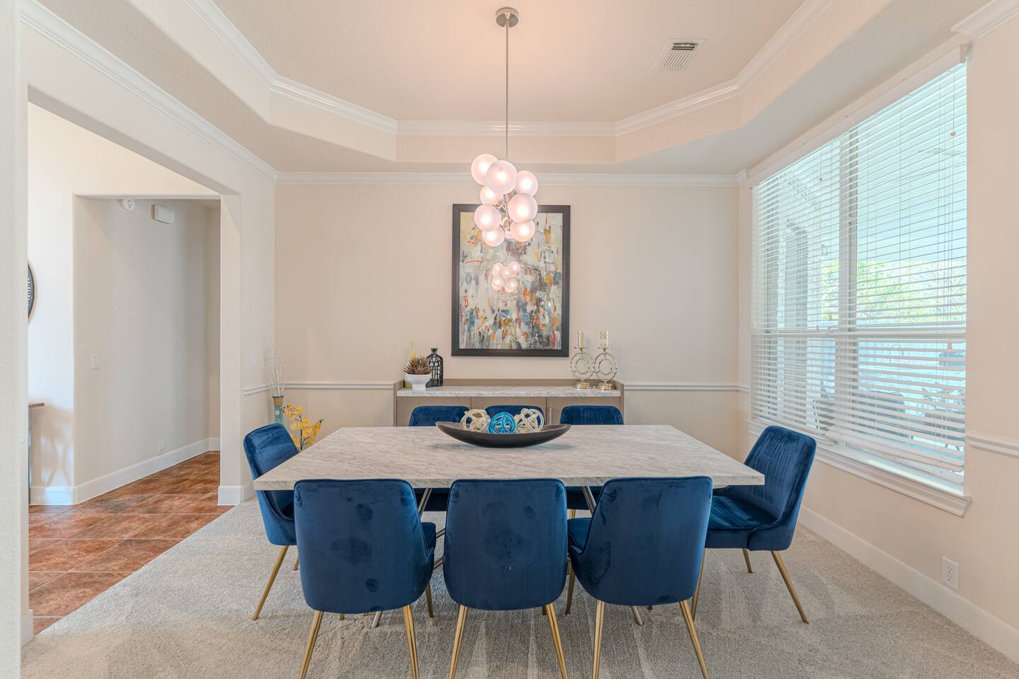 🏡 This spacious, well-equipped 1 story home is designed for comfort, functionality, and group stays! 🛋️ Open-concept living area with high ceilings and natural light 🍽️ Fully equipped kitchen with large dining area (sits 8) 🛏️ BEDROOMS (all downstairs, single story home): Main bedroom – King bed with ensuite bathroom Bedroom 2 – Queen bed (shared bath with #3) Bedroom 3 – Queen bed (shared bath with #2) Bedroom 4 – Queen bed (no bathroom) Studio - 2 twin beds (trundle) 📺 Cozy living room w large TV for movie nights 💻 Home office with fast WiFi 🛏️ Carpeted bedrooms & ceramic tyle in common areas 🚗 2-car garage + driveway space for 4 more cars