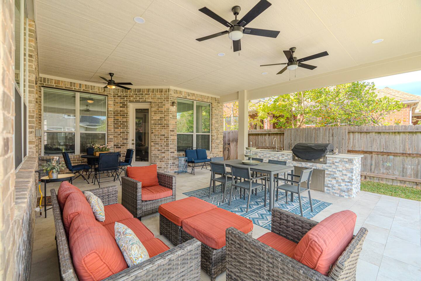 Enjoy comfort, privacy, and space in this newly furnished 1-story home—perfect for families or groups looking to relax and reconnect in the quiet, Augusta Pines Golf Course community. • 4 bedrooms, sleeps 10 comfortably • 3.5 bathrooms • Ample backyard with outdoor dining area + Summer kitchen • Large living room w TV + separate home office • Large kitchen and dining spaces for families • Quiet, safe neighborhood for restful stays • Access to commty Pool, tennis, gym (free); Golf (paid)