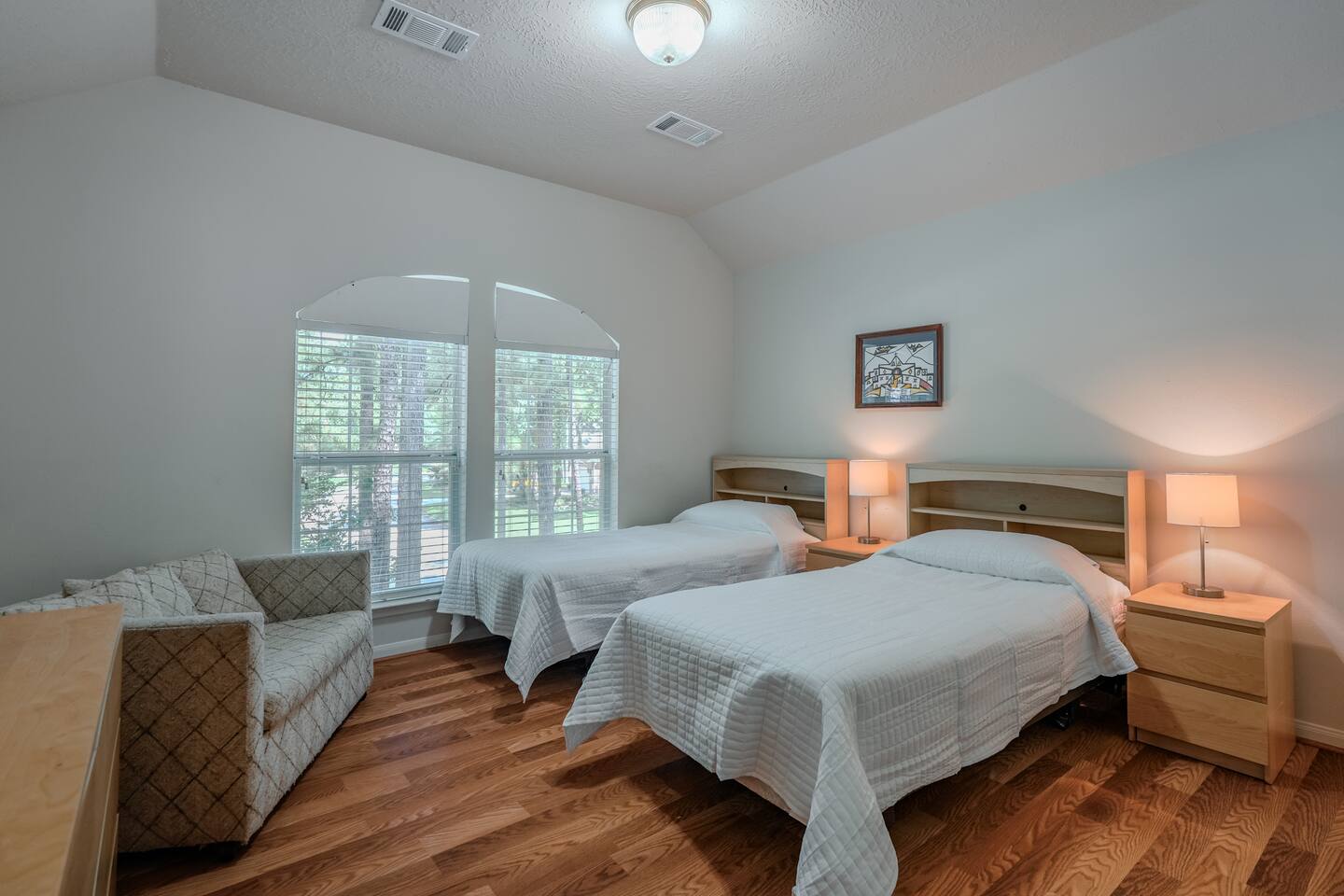 For reservations of 14 days or more, a mid-stay cleaning is required at the same rate as in the original booking price. Please note, the outdoor hot tub is NOT available for guest use. 🎉 NEARBY ATTRACTIONS • The Woodlands Waterway: 10-15 mins Scenic path with restaurants, shops, & beautiful waterfront views. • Market Street: 10-15 mins Upscale outdoor shopping, dining, & entertainment district. • The Woodlands Mall: 10-15 mins Large shopping center with major retailers, dining, & entertainment. • Cynthia Woods Mitchell Pavilion: 10-15 mins Top-rated outdoor concert venue hosting major performances & events. • Lake Woodlands: 5–10 mins Great for kayaking, paddleboarding, & enjoying waterfront views. • George Mitchell Nature Preserve: 10–15 mins Explore 1,700+ acres of forest with scenic hiking & biking trails. • Lake Conroe: 20–25 mins (14 miles) Popular spot for boating, fishing, lakeside dining, & water activities. • George Bush Intercontinental Airport (IAH): 30–35 mins (28–30 miles) Major airport with domestic & international flights. • Downtown Houston: 40–45 mins (38–40 miles) Access museums, dining, nightlife, sports venues, & more.