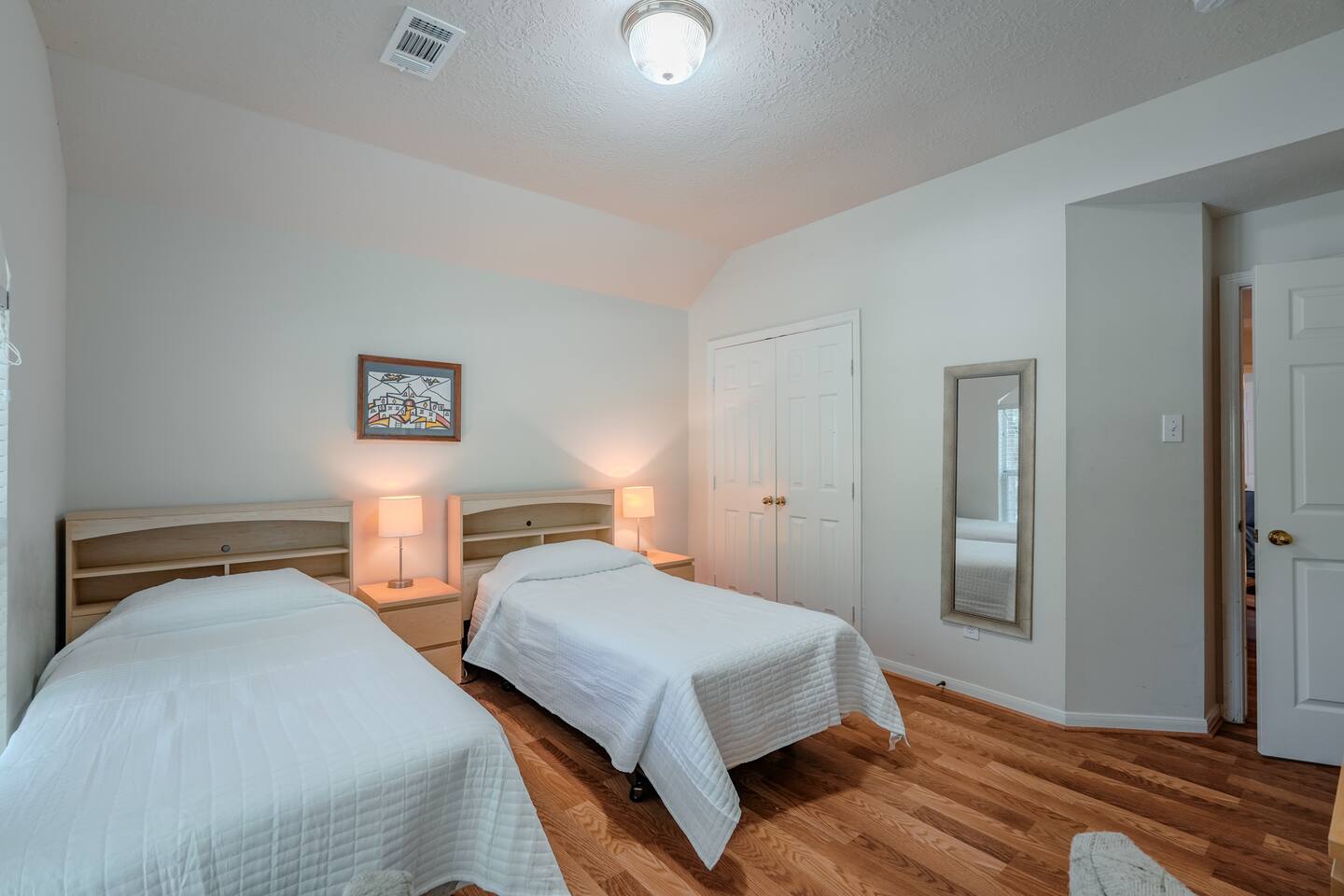 🏡 Enjoy a fun filled stay in our cozy and classic home: • 2 stories 2,903 sq ft • Fits up to 11 guests • 5 bdr, 3 baths • Open-concept living area with natural light • Backyard w Covered Deck • Fast WiFi • Located inside beautiful Alden Bridge Village in The Woodlands • Quick access to main roads, The Woodlands Mall, Target, Trader Joe's, HEB, The Home Depot, shops, restaurants, movie theatres, golf, parks, community pools and much more! Come and enjoy your stay hosted by a Super Host!