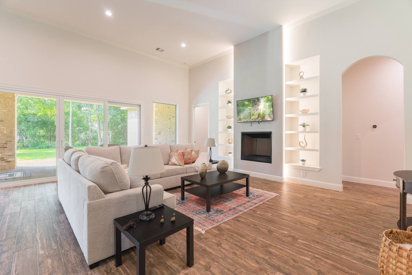🌿 Welcome to Your Forest Retreat Nestled within a private gated community surrounded by lush trees, this single-story haven offers the perfect balance of comfort, style, and tranquility. 🏡 Home Highlights • 4 cozy bedrooms & 3.5 bathrooms – designed for relaxation and space for everyone. • 🛏️ Sleeping arrangements: • Primary bedroom: King bed • Second bedroom: King bed • Third bedroom: Queen bed • Fourth bedroom: Queen bed • Soaring ceilings & natural light create a bright and inviting atmosphere. • Spacious living room – perfect for movie nights or unwinding after a day of exploring. • Modern, fully equipped kitchen ideal for home-cooked meals and culinary creativity. • 🖥️ Dedicated office room – a peaceful space to focus, work, or dream. • 🪴 Expansive outdoor terrace – breathe in the fresh forest air and enjoy nature’s calm. • 🛋️ Brand-new furniture and plush beds for ultimate comfort. • 🚗 Two-car garage for easy parking and added convenience. • 🧺 Washer & dryer available for your use during your stay. ✨ The Experience Whether you’re looking to recharge in peace or explore The Woodlands’ trails and charm, this retreat is the perfect home base. Thoughtfully designed for families, groups, and nature lovers alike — a true home away from home where unforgettable memories are made.