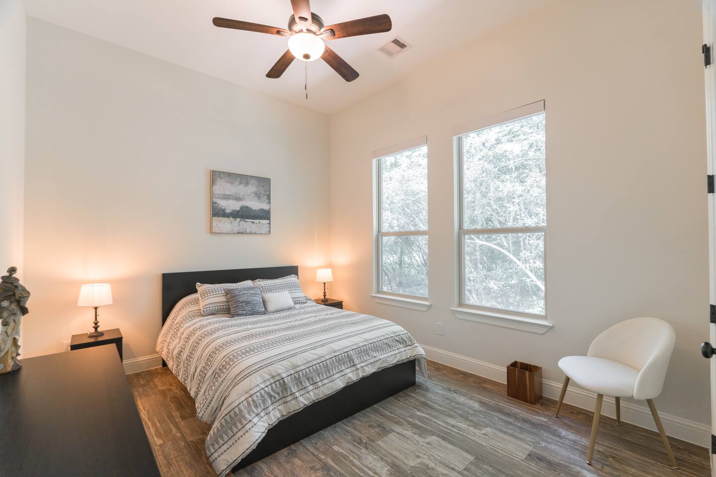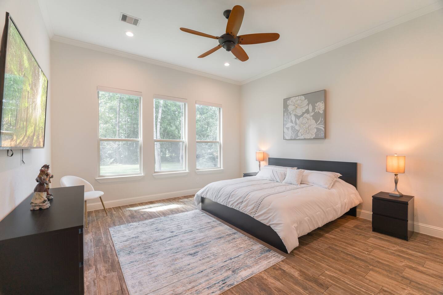For reservations of 14 days or more, a mid-stay cleaning is required at the same rate as the original cleaning fee. NO working vehicles are allowed (trucks, trailers etc) in this community and NO street parking either. 🎉 NEARBY ATTRACTIONS • The Woodlands Waterway: 15–20 mins Scenic path with restaurants, shops, & beautiful waterfront views. • Market Street: 15–20 mins Upscale outdoor shopping, dining, & entertainment district. • The Woodlands Mall: 15–20 mins Large shopping center with major retailers, dining, & entertainment. • Cynthia Woods Mitchell Pavilion: 15–20 mins Top-rated outdoor concert venue hosting major performances & events. • Lake Woodlands: 10–15 mins Great for kayaking, paddleboarding, & enjoying waterfront views. • George Mitchell Nature Preserve: 5–10 mins Explore 1,700+ acres of forest with scenic hiking & biking trails. • Lake Conroe: 35–40 mins (30–35 miles) Popular spot for boating, fishing, lakeside dining, & water activities. • George Bush Intercontinental Airport (IAH): 40–45 mins (28–30 miles) Major airport with domestic & international flights. • Downtown Houston: 45–55 mins (35–37 miles) Access museums, dining, nightlife, sports venues, & more.