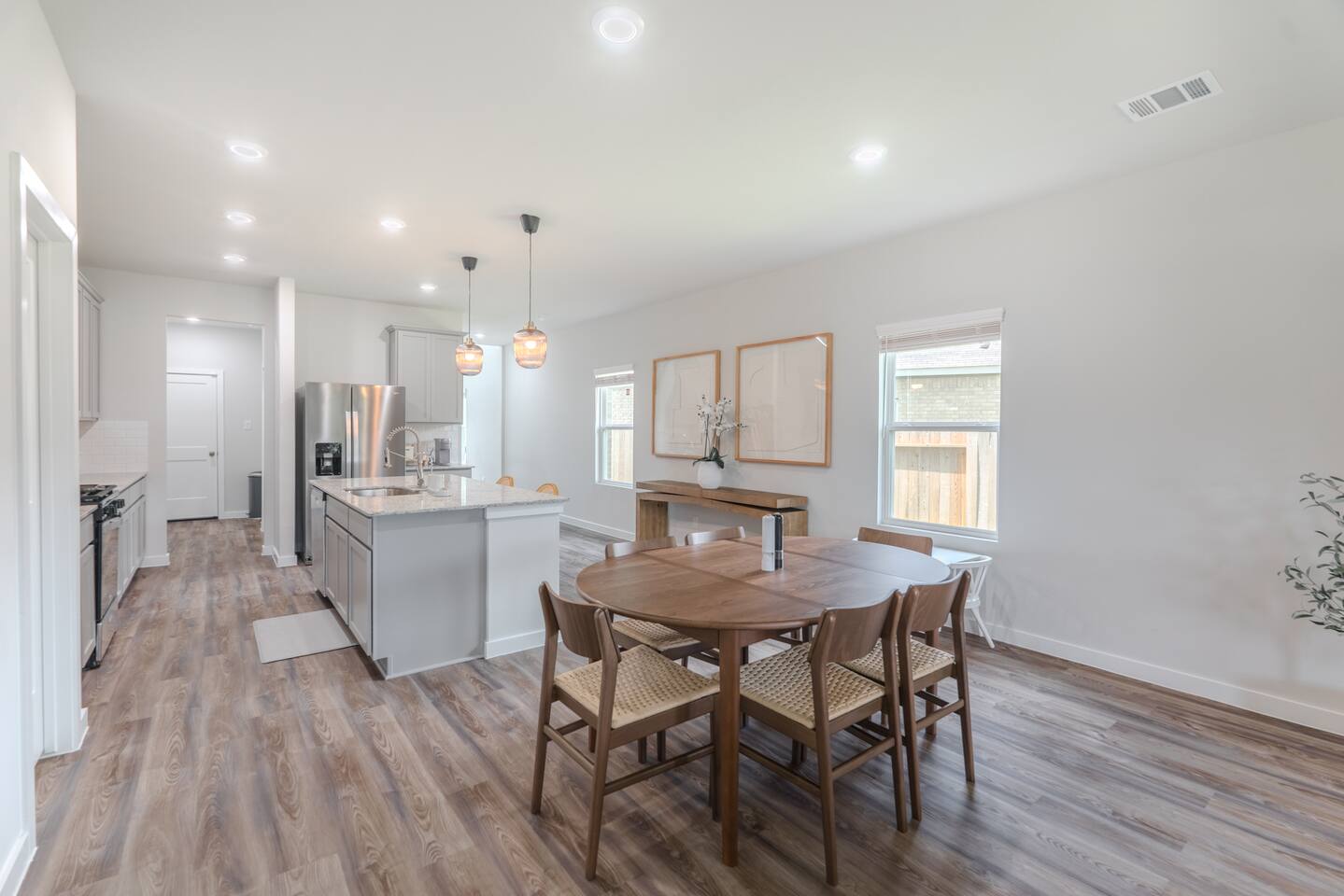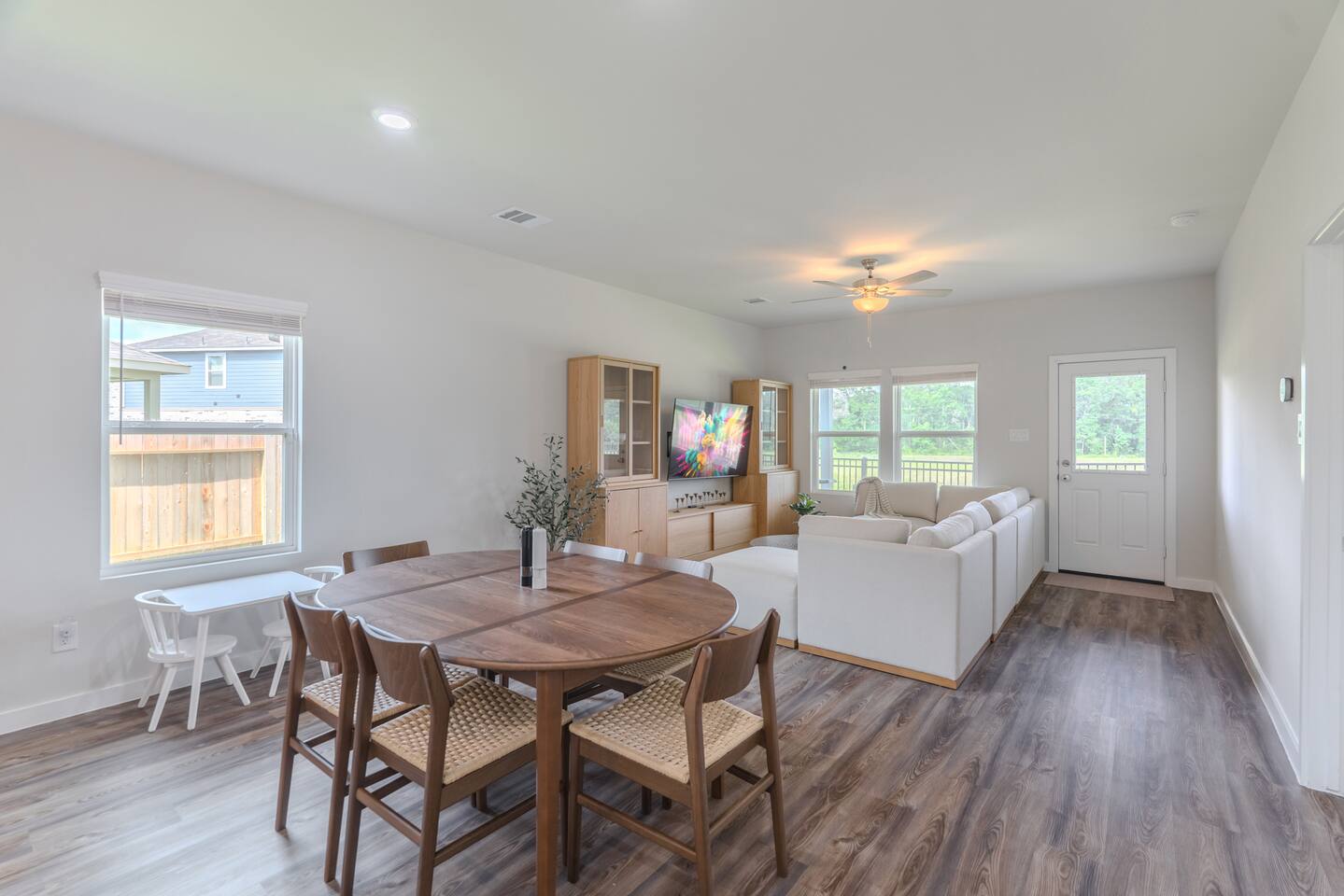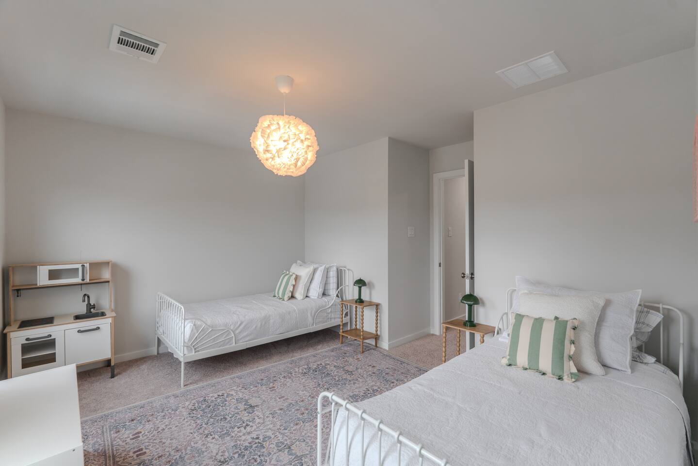 Spacious Modern Retreat – Perfect for Families & Groups Welcome to your home away from home! This newly built 5-bedroom, 3-bath home offers modern comfort, thoughtful design, and plenty of space for up to 10 guests. Ideal for families or groups, you'll enjoy: 🛏️ 5 Bedrooms: Ground floor: • Bedroom 1 – King bed • Bedroom 2 – Two twin beds 2nd Floor: • Bedroom 3 – Queen bed • Bedroom 4 – Two twin beds combined to form a king-size bed, plus a crib • Bedroom 5 – Two twin beds 🛁 3 Full Bathrooms – 2 on ground floor, 1 on the upper level Clean, stylish, and stocked with essentials 🍽️ Fully Equipped Kitchen – New appliances & fully stocked for cooking 🌐 Fast WiFi – Stay connected and stream with ease 🎮 Kids' Playground – Safe and fun backyard setup 🍹 Outdoor Living – Covered terrace with lounge area, BBQ grill, and dining space 🧼 Fresh, Modern Decor – Clean finishes and brand-new furnishings throughout Whether you're relaxing on the terrace, cooking a family meal, or letting the kids play in the yard, this home has everything you need for a memorable and comfortable stay.