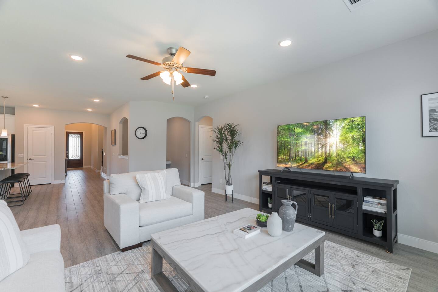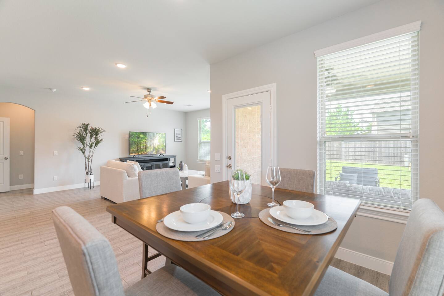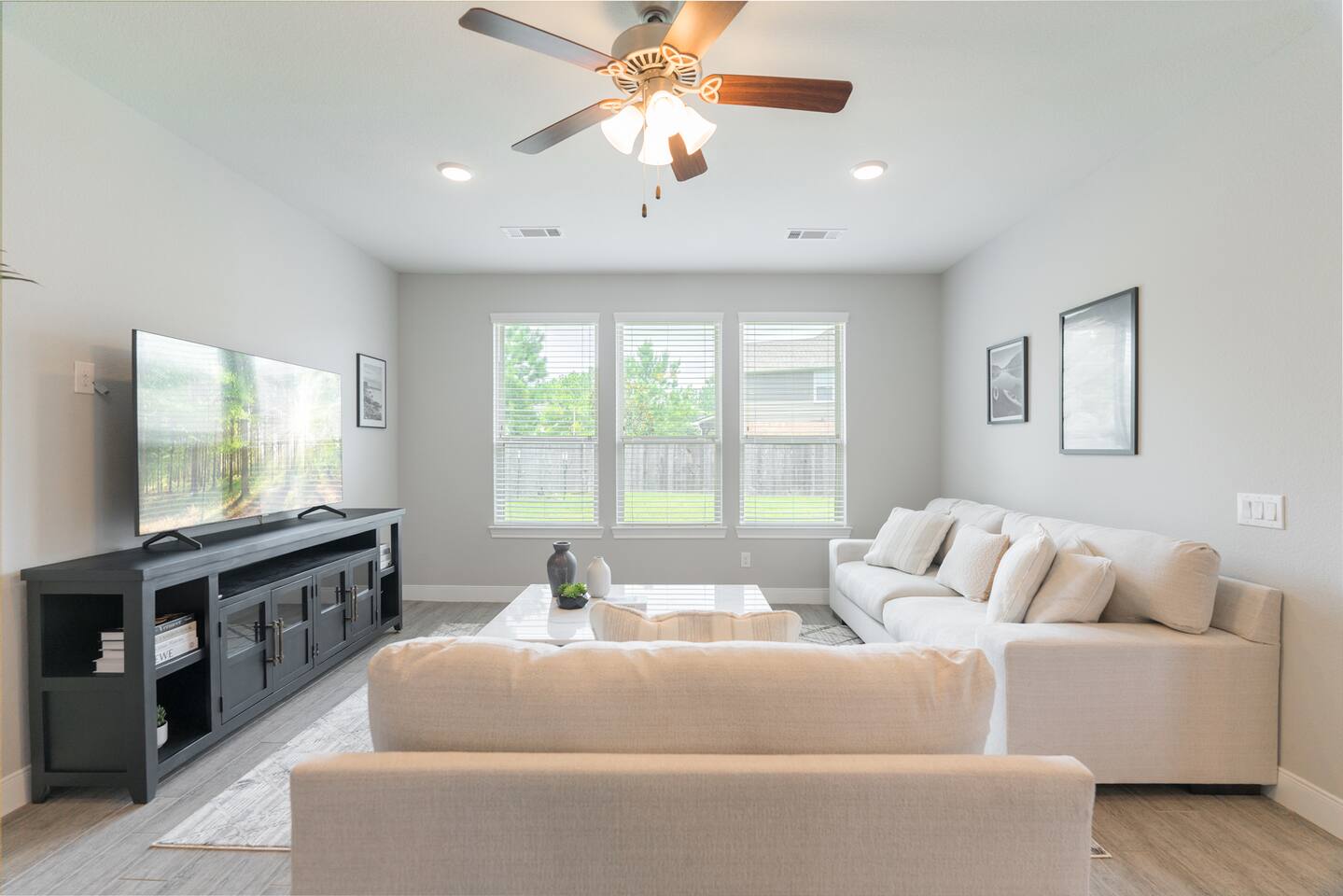 Experience upscale living in the heart of Creekside Village, The Woodlands, TX! Our home boasts upscale finishes, furniture, and decor, ideal for families seeking relaxation in our serene neighborhood. Accommodating 1-2 families (up to 8 guests), enjoy the ample living space area and the comfy TV room. Create unforgettable memories in the fully equipped kitchen within the open floor concept. Nearby VIP movie theaters, parks, dining, and shopping ensure endless entertainment. Step outside to enjoy the forest surroundings. Experience a hassle-free stay with our highly rated Super-Host and uncover all The Woodlands has to offer!